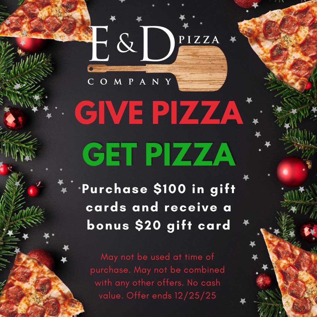 Pizza is meant to be shared! Follow us on Facebook and Instagram for updates, giveaways, specials, and just pure pizza fun. Be sure to hashtag #EandDpizzacompany for a chance to be featured!
